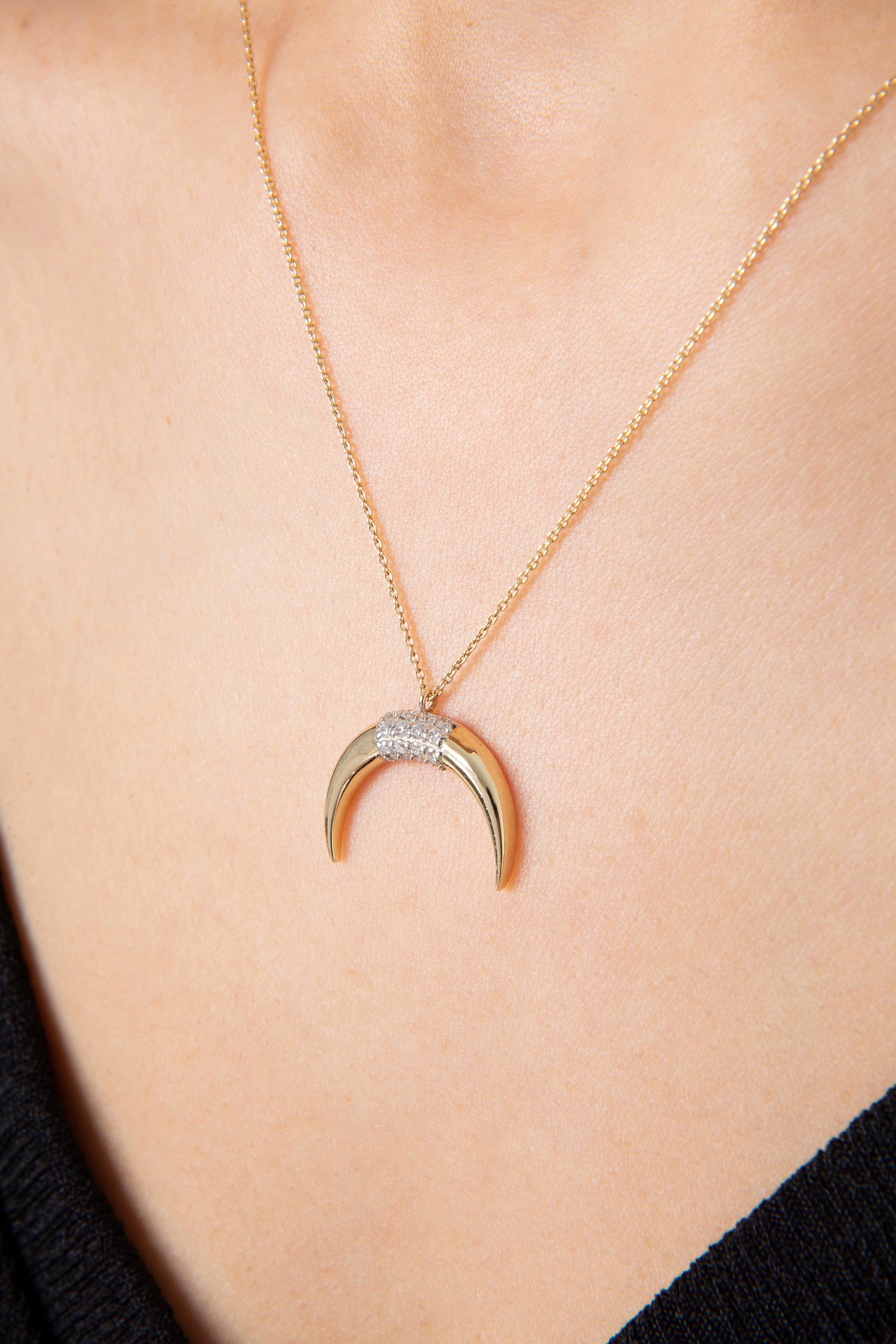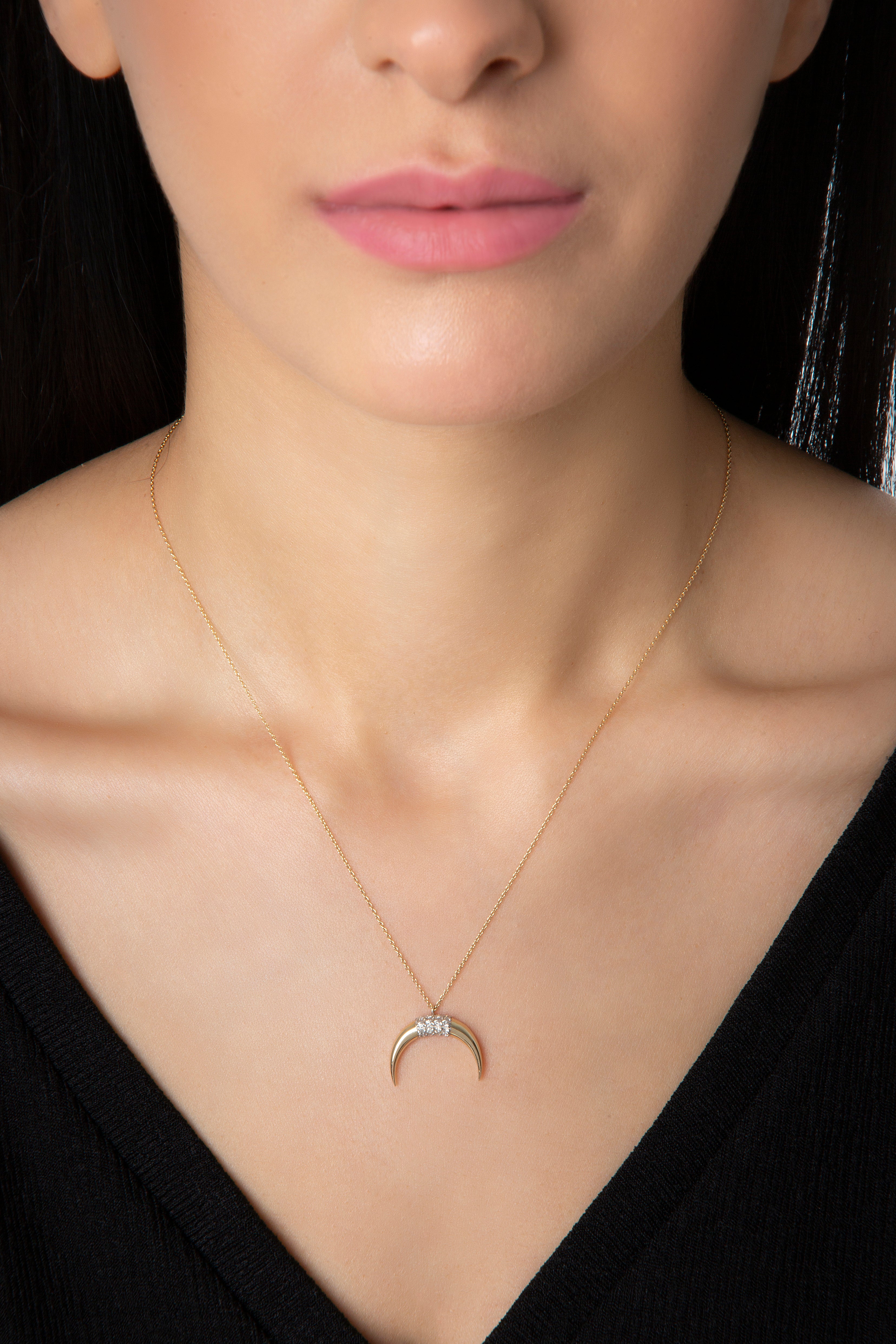 Moon Light Ear Jacket Necklace in Yellow Gold
