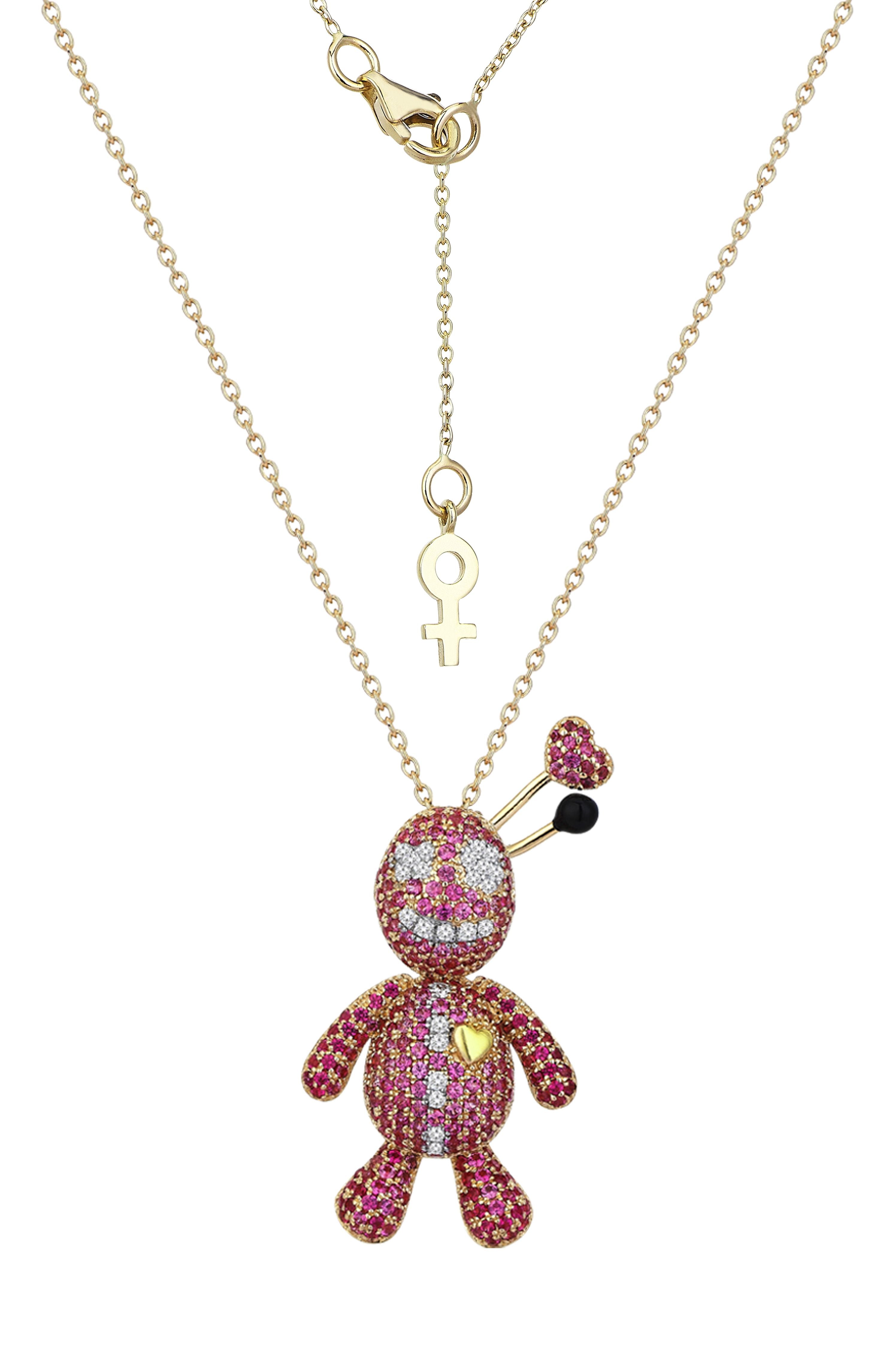 Pink Erzulie in Yellow Gold Necklace