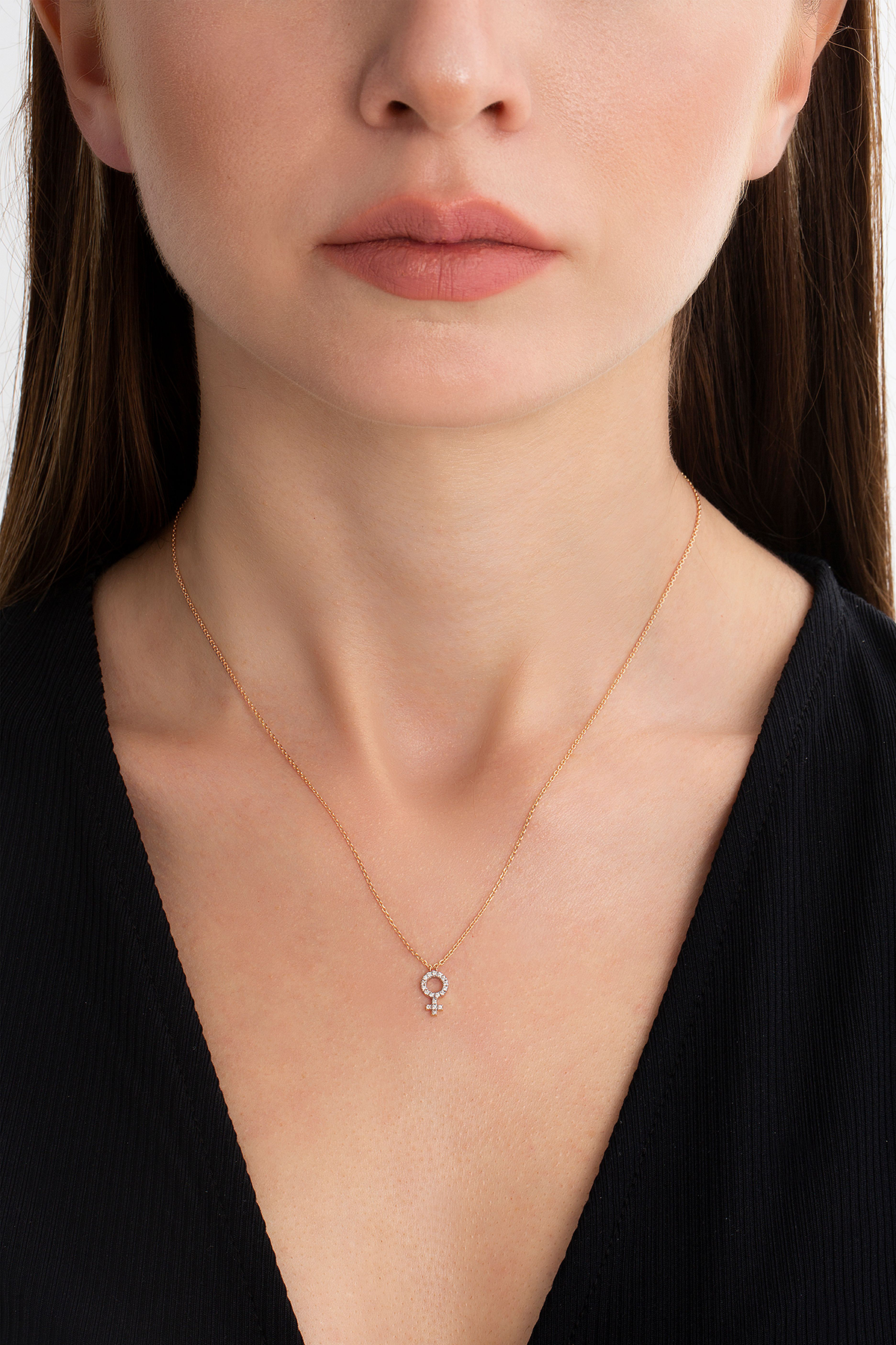 Venus Mini Logo Diamond Necklace in Rose Gold